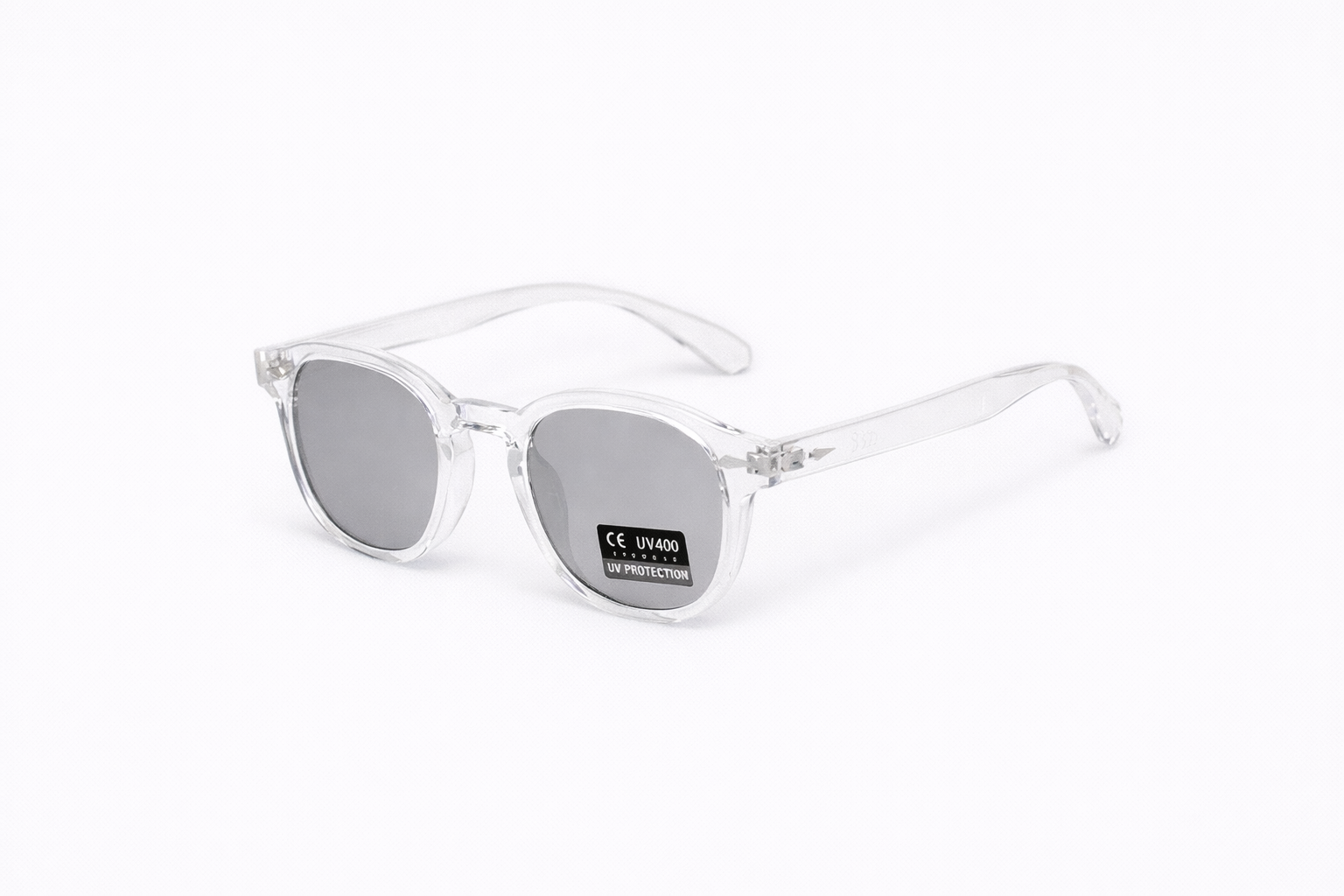 Μοντέρνα unisex γυαλιά ηλίου διαφανή με φακό UV400 προστασία και ιταλικό design, ιδανικά για κομψές casual εμφανίσεις.