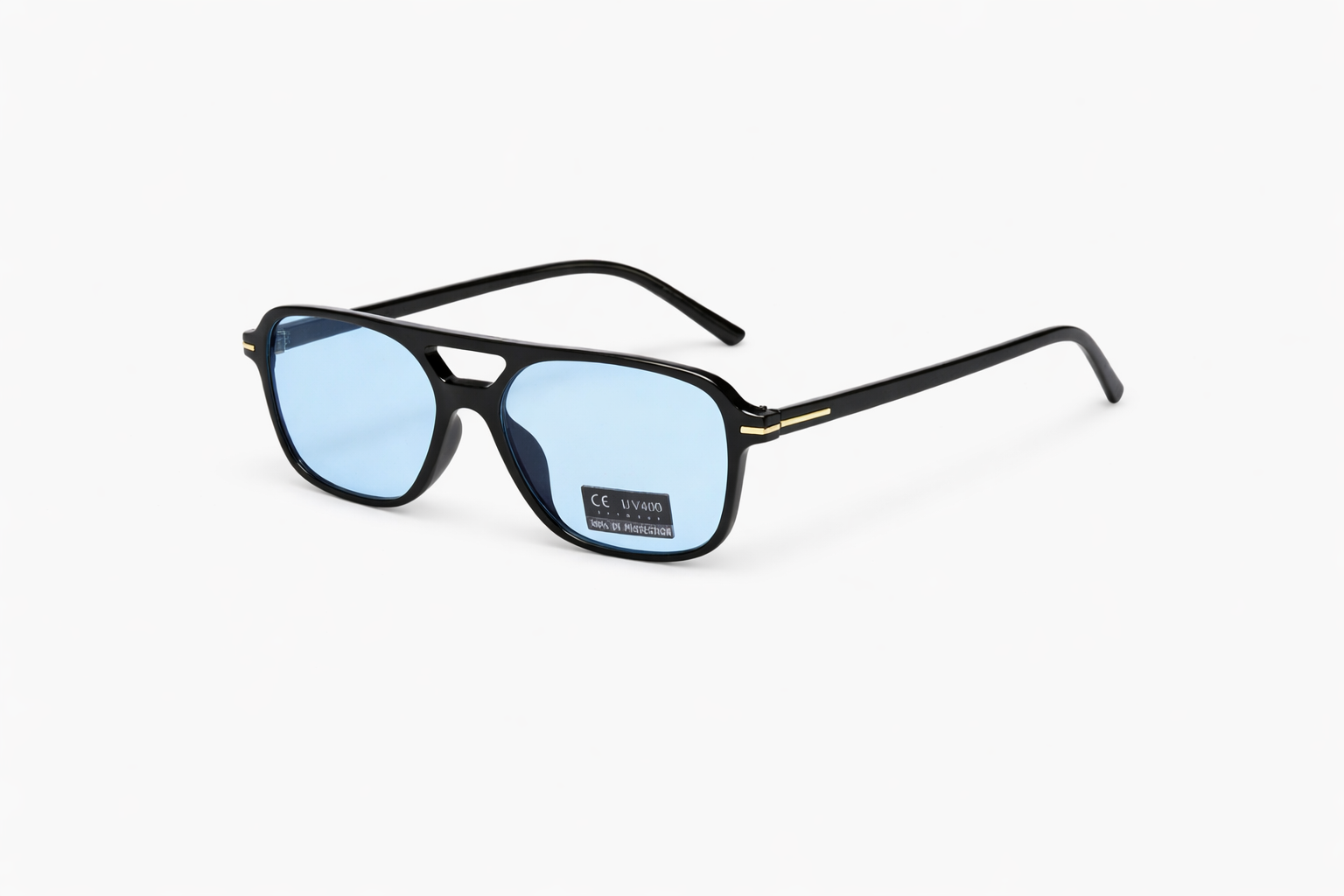 Μοντέρνα unisex γυαλιά ηλίου με γαλάζιο φακό UV400 προστασία και ιταλικό design, ιδανικά για κομψές casual εμφανίσεις.