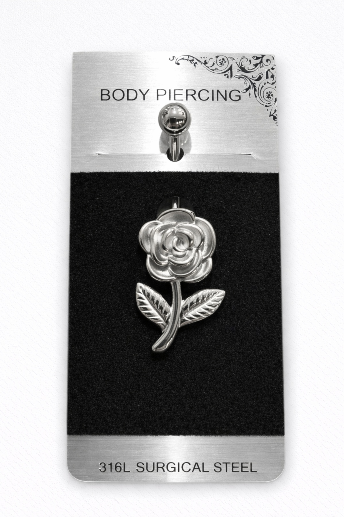 Piercing αφαλού με τρισδιάστατο σχέδιο τριαντάφυλλο, κατασκευασμένο από 316L surgical steel για μέγιστη αντοχή και άνεση.