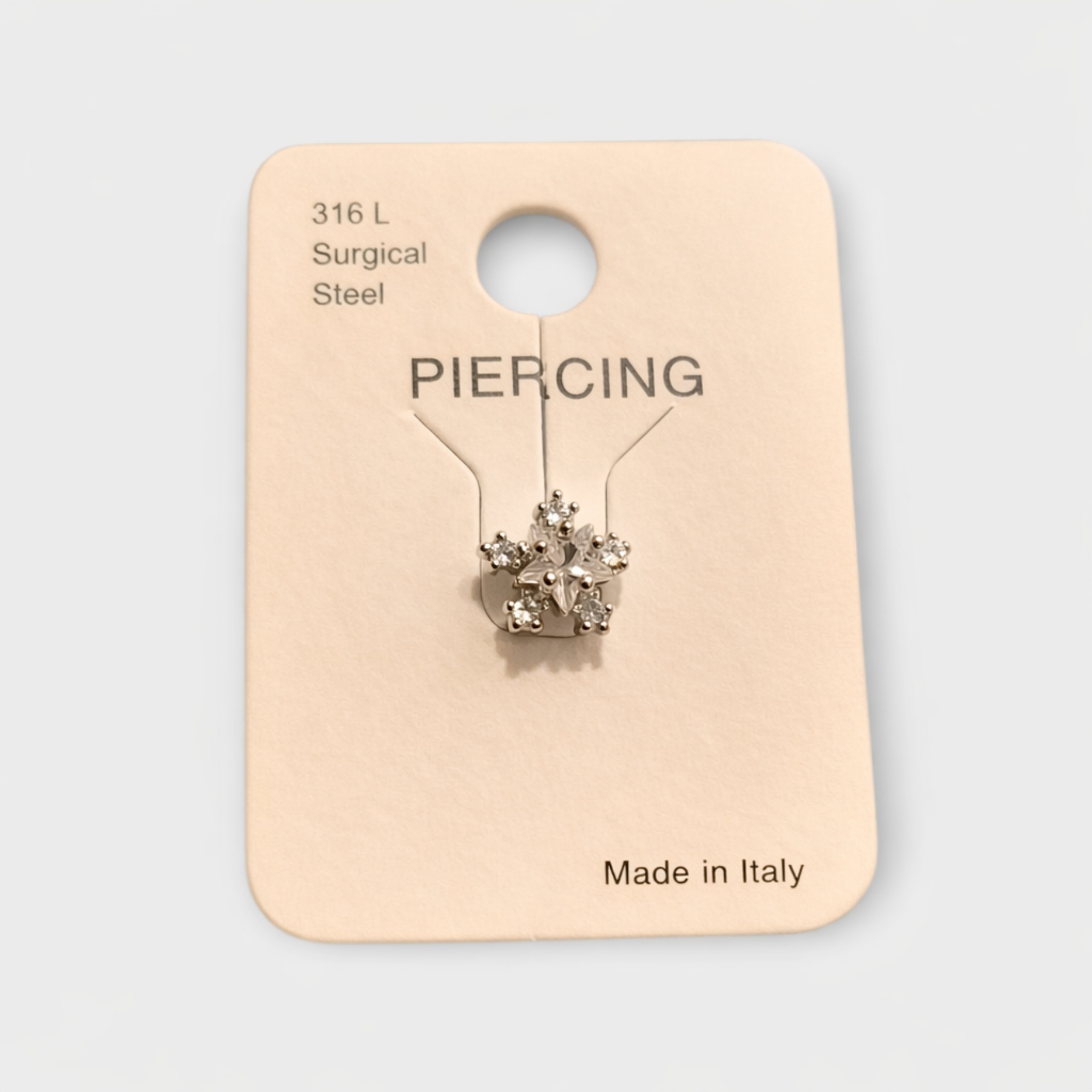 ΤΡΑΓΟΣ PIERCING ιδιαίτερου σχεδιασμού, υψηλής ποιότητας και αισθητικής, με κομψό σχέδιο λουλουδιού σε στυλ νιφάδας διακοσμημένο με λαμπερές πέτρες που χαρίζουν εκλεπτυσμένη λάμψη. Κατασκευασμένο από 316L χειρουργικό ατσάλι, προσφέρει ανθεκτικότητα, υποαλλεργική προστασία και άνετη εφαρμογή για καθημερινή χρήση. Το ΤΡΑΓΟΣ PIERCING Snow Crystal Flower αποτελεί ιδανική επιλογή για όσους αγαπούν τα ρομαντικά και κομψά κοσμήματα που αναδεικνύουν το προσωπικό στυλ με διακριτική λάμψη. Made in Italy με έμφαση στη λεπτομέρεια και την υψηλή ποιότητα κατασκευής.