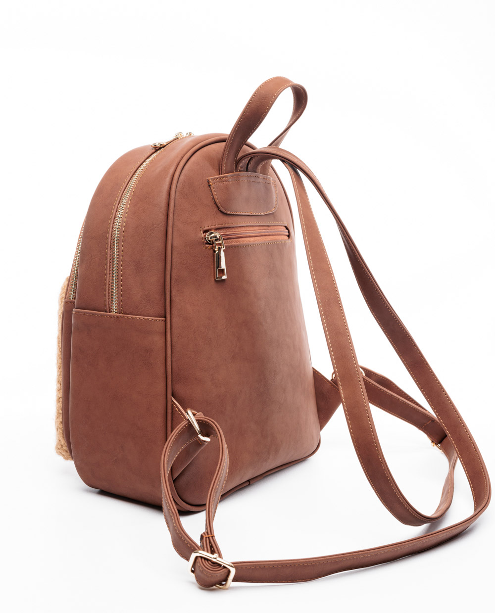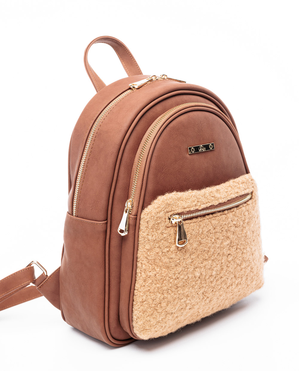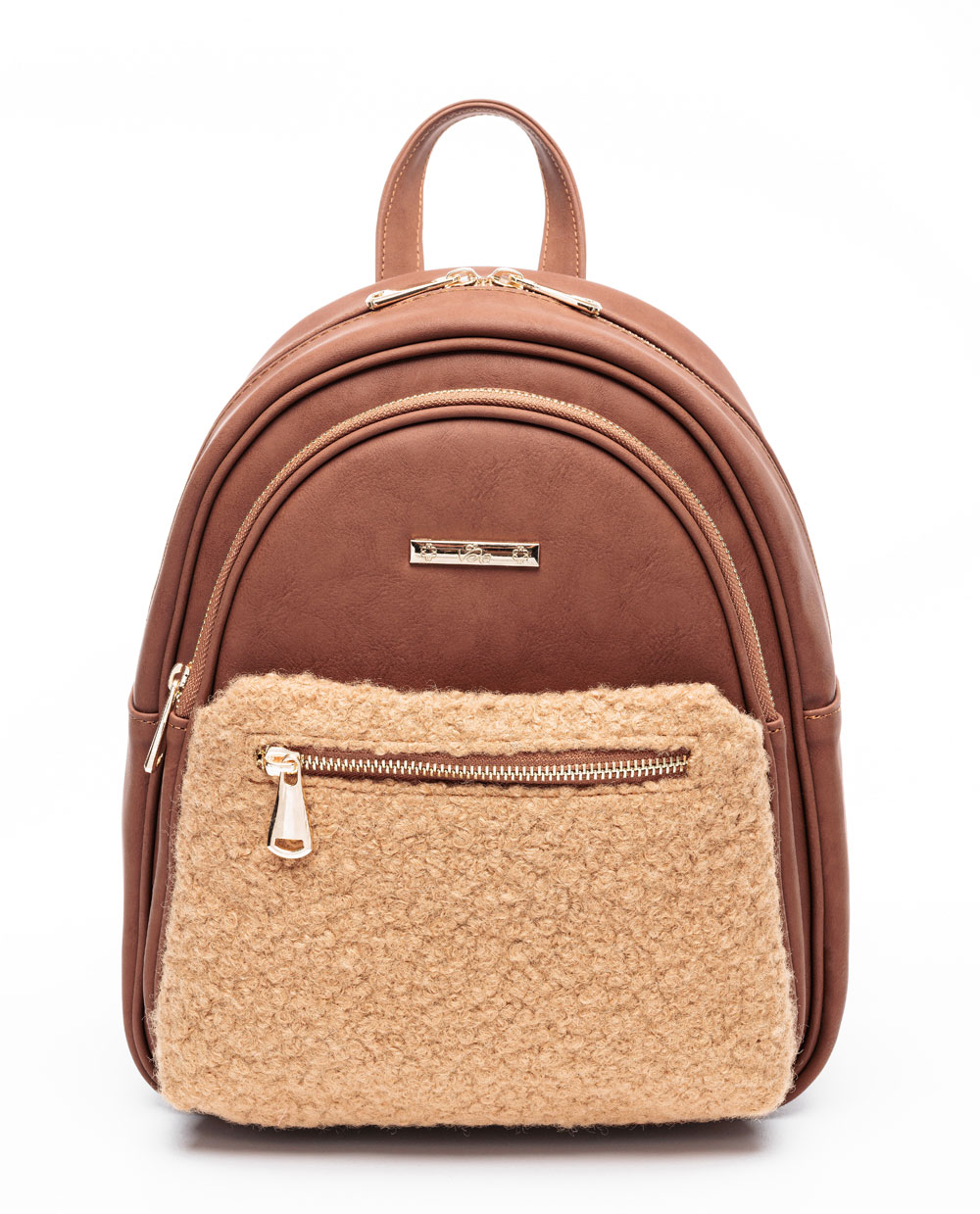 Σακίδιο πλάτης καμηλό pon pon σε συνδυασμό με ταμπα, εξωτερικές τσέπες μπροστά και πίσω.