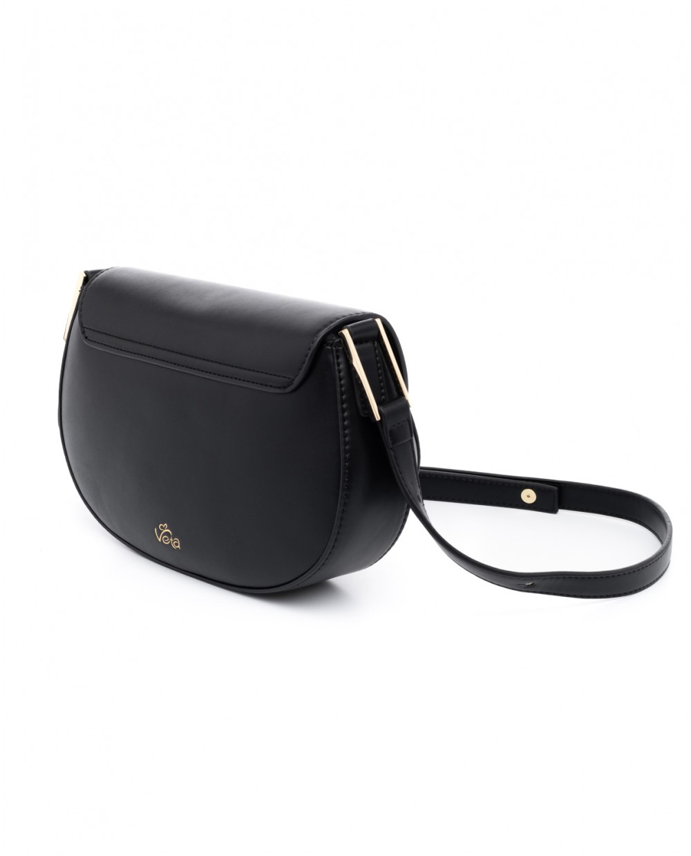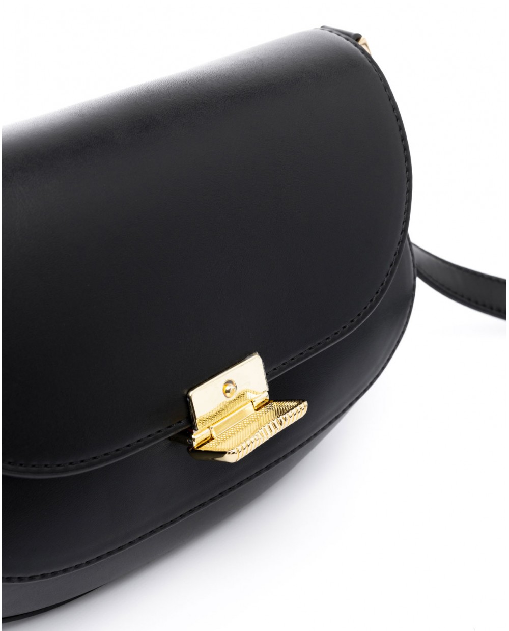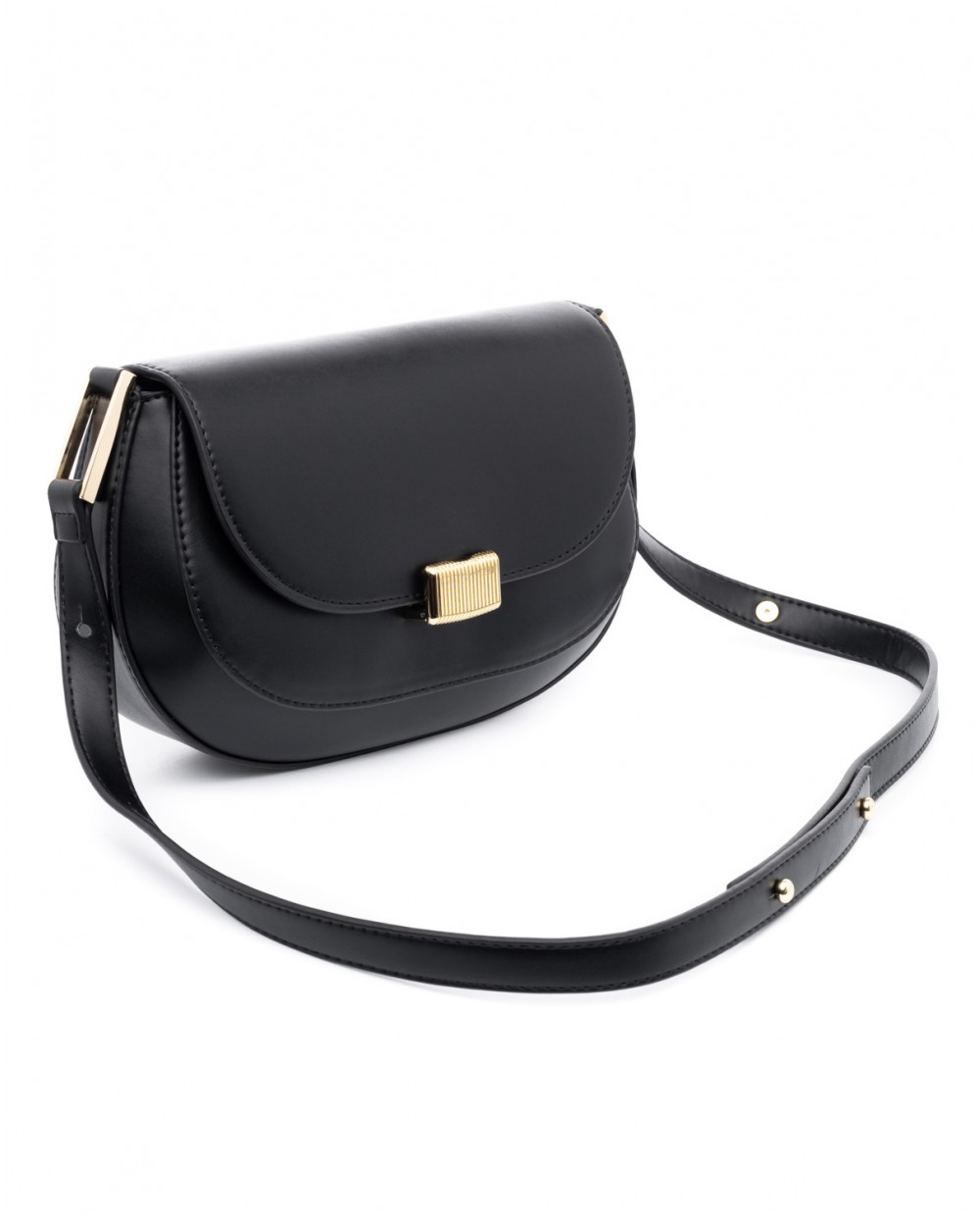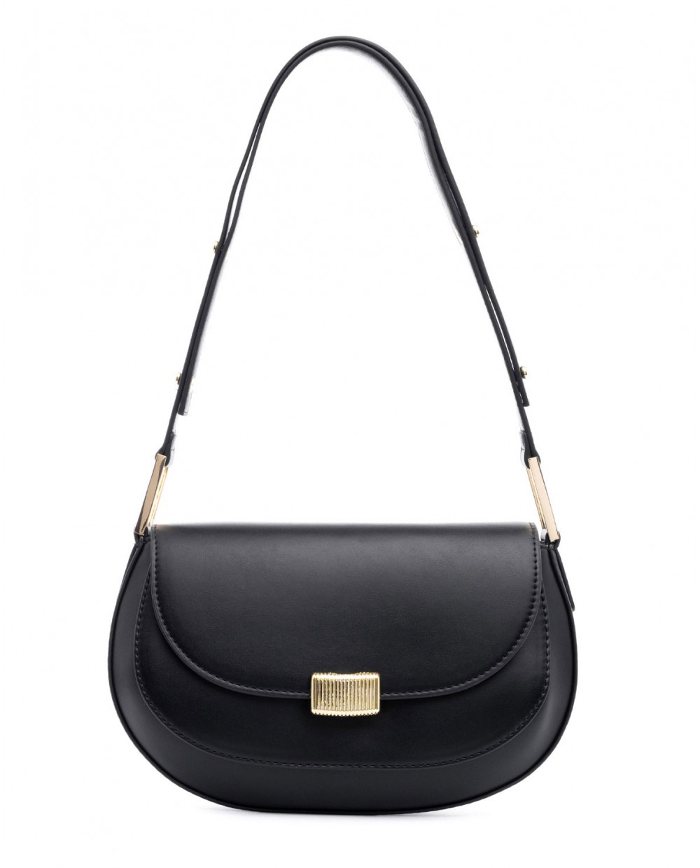 Μαύρη τσάντα ώμου με ρυθμιζόμενο λουρί για να φορεθεί και ως χιαστή.