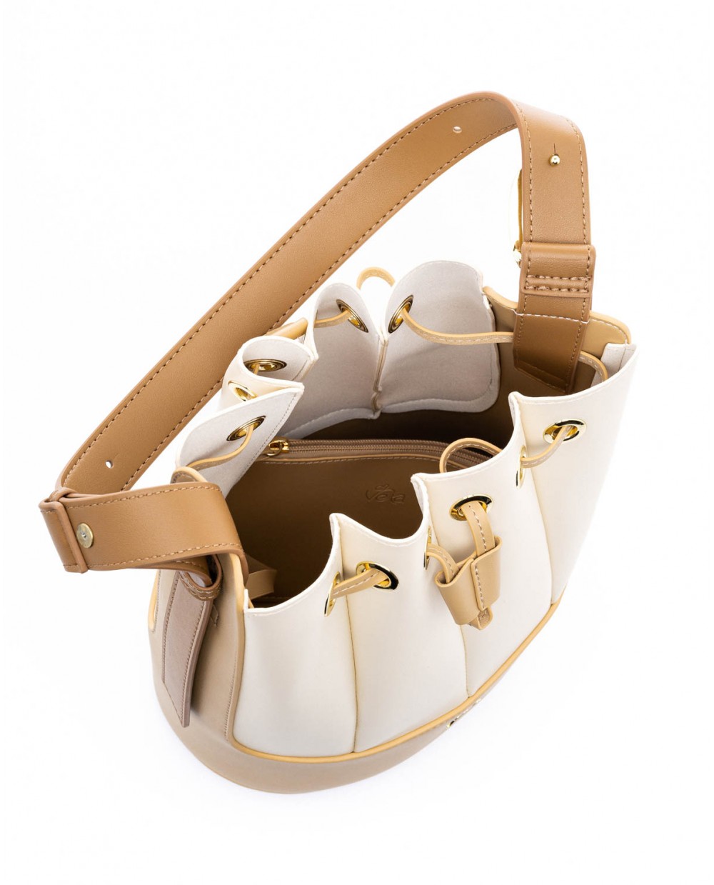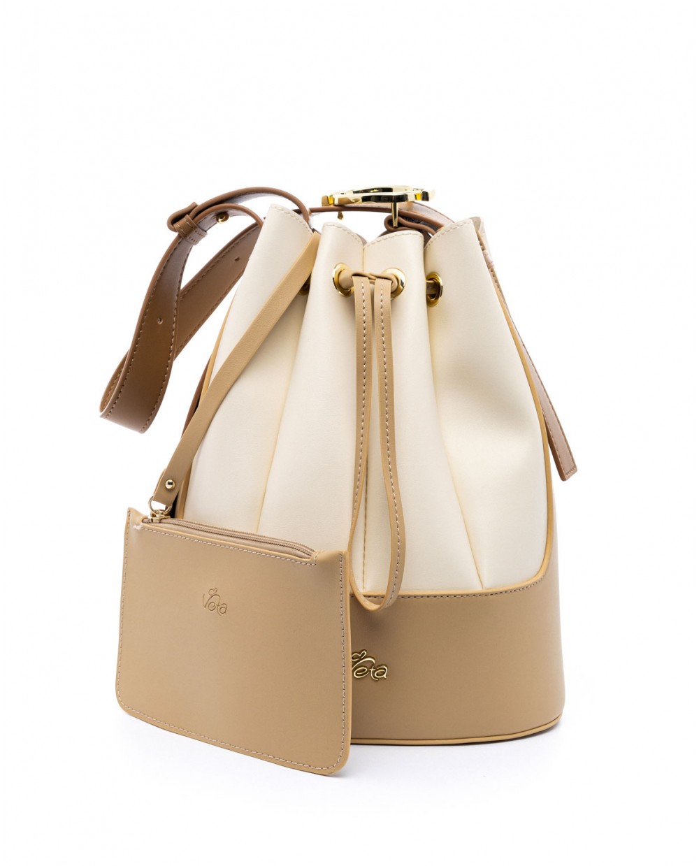 Τσάντα ώμου πουγκί σε γήινες αποχρώσεις.